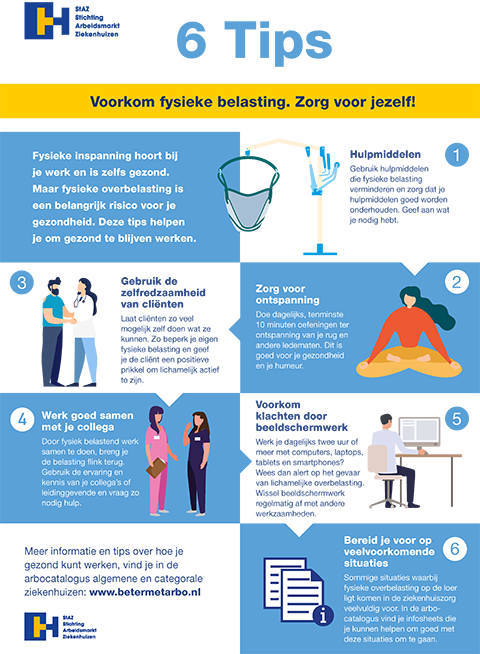 Met deze infographic voorkomt u fysieke overbelasting. Neem deze zes tips ter harte en zorg dat uw fysieke inspanning niet leidt tot fysieke overbelasting.